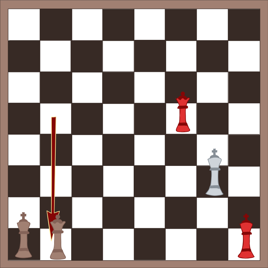 Pietro spostò il suo re di una casella, l’unica mossa possibile. Con un gesto rapido, Giovanna usò il suo re per catturare la regina di Angelo, liberandolo dalla minaccia. La regina rossa volò via dalla scacchiera.